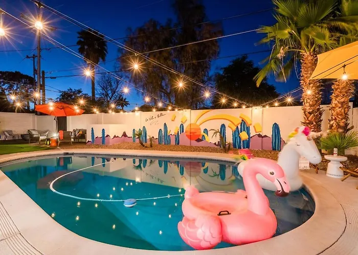 De luchthaven Phoenix Sky Harbor is binnen 15 minuten rijden te bereiken en natuurattracties zoals de Woestijnbotanische Tuin liggen op 2 km afstand. Het Paiute Park is op een klein stukje lopen van dit vakantiehuis te vinden. Voor sportliefhebbers is 5 Mins Old Town!Heated Pool!Minigolf!Bbq!Firepit Villa een ideaal startpunt om de sportscene van Scottsdale te ontdekken, met het Scottsdale Stadion binnen 20 minuten te voet ervan.